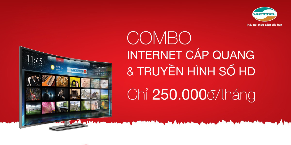 Đối với gói cước khuyến mãi combo internet cáp quang + truyền hình số HD thì quý khách hàng sẽ có ngay đường truyền cáp quang tốc độ cao, ổn định để phục vụ nhu cầu sử dụng internet như đọc báo, xem phim HD, chơi game,.. và được trải nghiệm dịch vụ truyền hình số HD của Viettel. Hòa mạng được miễn phí lắp đặt, trang bị modem WiFi và đầu thu kĩ thuật số HD trị giá 650.000đ, xem hơn 105 kênh truyền hình đặc sắc cùng với kho phim, kho nhạc hấp dẫn. Dịch vụ truyền hình số HD của Viettel giúp khách hàng trải nghiệm chất lượng hình ảnh rõ nét, âm thanh trung thực.
